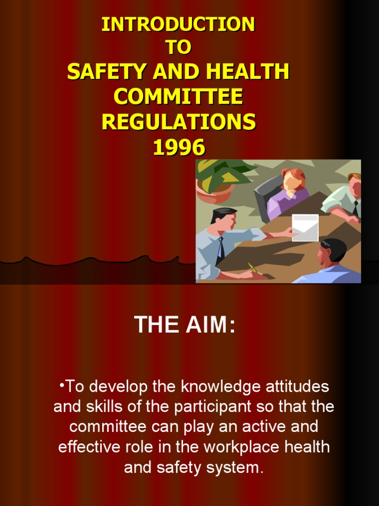 PPT Safety Committees PowerPoint Presentation, free download ID6814890 Safety Committee Regulations 16 rows back to top. the canada labour code requires employers under federal jurisdiction to appoint a health and safety representative for each. A health and safety committee consists of worker (employee) and management members. recognize workplace hazards. Evaluate the hazards and risks that may cause incidents, injuries, and illness. Policy committees, work place committees and health. Safety Committee Regulations.